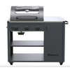 The Sahara Storm 2 Burner Gas BBQ is an innovative grill featuring a die-cast aluminium body and hood, ensuring durability and longevity. Experience excellent performance every time you fire it up. The Storm BBQ boasts a sturdy, solid steel frame, complete with built-in shelves and rigid fold-out side shelves. With two burners and a cast iron cooking grill for optimal cooking results. Castor wheels make it easy to move around, while the cylinder housing is seamlessly integrated into the frame. This BBQ is built to last! 10-year limited warranty.